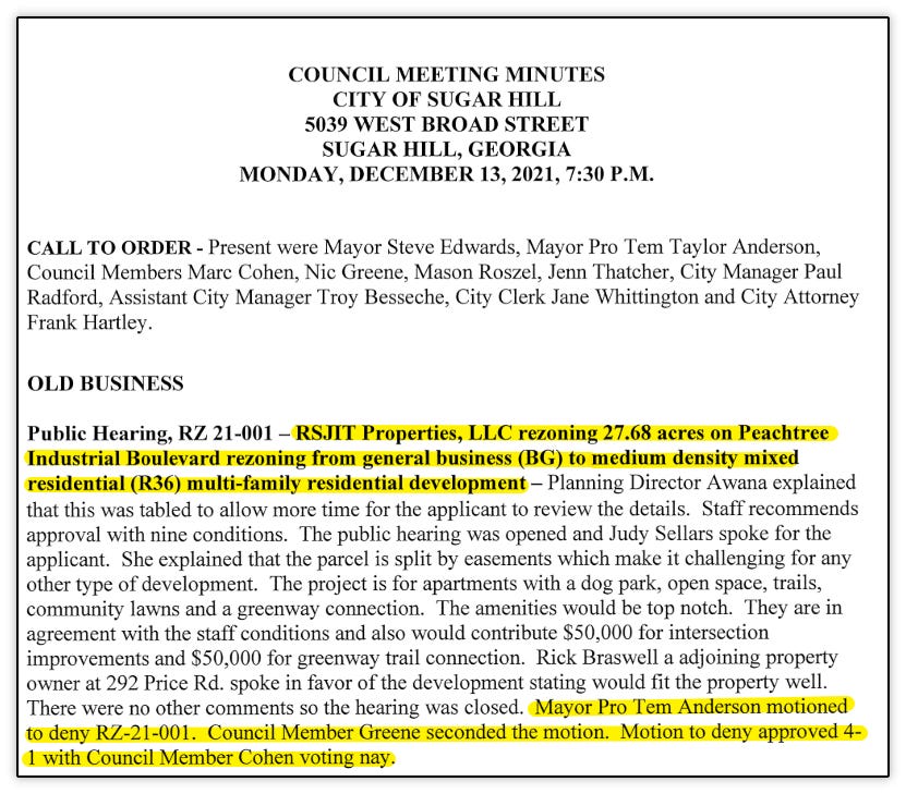 Regarding growth, there hasn’t been an apartment/mixed-use development proposed in the city since December 2021. And it was denied.