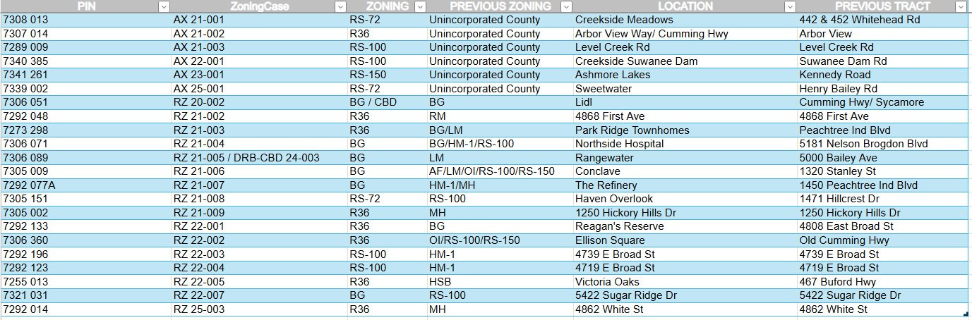 Regarding other zonings, here are all the approved zonings from 2020-2025 that were presented during the zoning map update to City Council a few months ago.