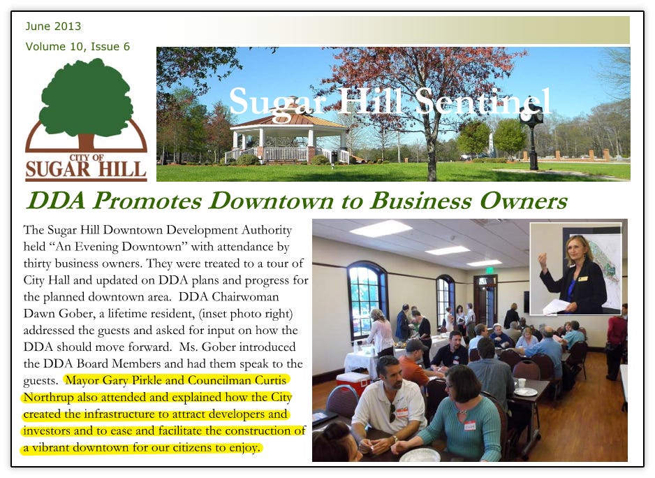 We would get to work immediately on promoting downtown and the redevelopment opportunities at the direction of Mayor and Council. DDA Chairman Dawn P. Gober would become a constant source of inspiration and cheerleading for the city with the newly energized DDA. This included a significant presence at a number of events, like the Gwinnett Chamber’s recently begun Redevelopment Forum which would eventually become the Metro-Atlanta Redevelopment Summit.